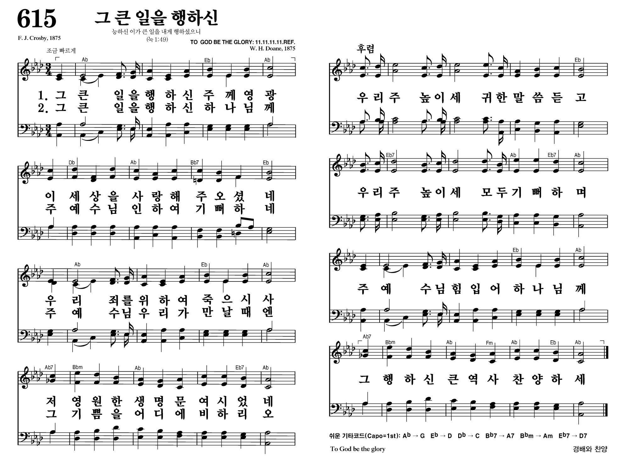 그 큰 일을 행하신(우리 주 높이세)-찬송가 615장 악보